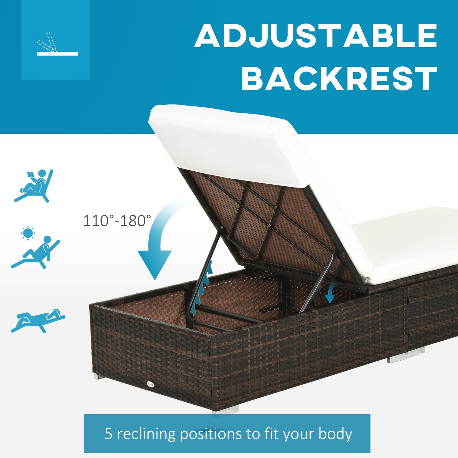 Choose this lounger from Outsunny for the perfect sunbathing partner in the comfort of your own garden. Using galvanised metal for a stable and robust structure, the frame is wrapped in PE wicker rattan, ensuring durability outdoors with little maintenance. The adjustable back allows you to set it to a level which is best for you, whilst a longline padded seat provides all the comfort you need, with four foot pads completing this piece for balance and floor protection.