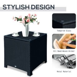 Outsunny PE Wicker Side Table Rattan Garden Furniture with Four Foot Pads, Rust & Mild Weather Damage Resistant, Black