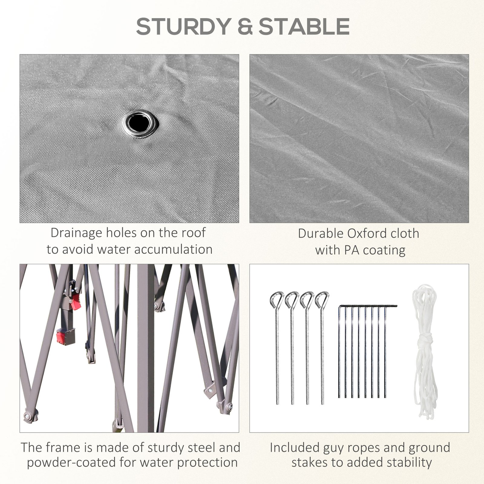 Transform your outdoor gatherings with the Outsunny quick-setup gazebo, designed for the outdoor enthusiast. Perfect for spontaneous family BBQs or elegant garden parties, this gazebo assembles in minutes, offering a seamless blend of convenience and sophistication. Its robust steel frame ensures stability across various weather conditions, while the net curtains provide both privacy and ventilation. Easily portable and compact, making it the ideal companion for any outdoor adventure.