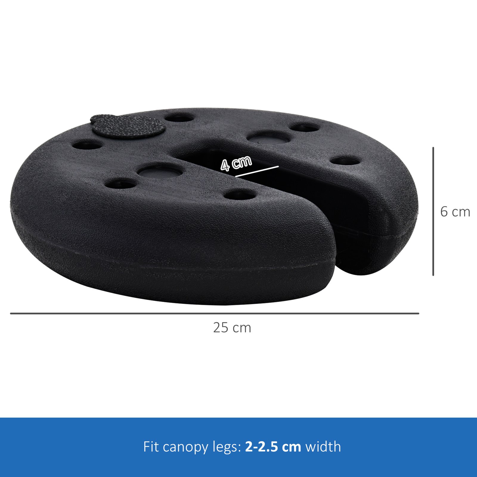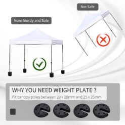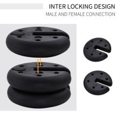 Keep your lightweight and pop-up tents weighed down with this set of four portable weights from Outsunny. Made from durable and heavy-duty plastic, these disc shaped pieces can be filled with sand, meaning you can take them easily with you. Weighing 3.5kg when filled with water, 4kg when filled with sand or 5kg when filled with cement, this set is an effective way to keep your shelter on the ground in rain and windy conditions.