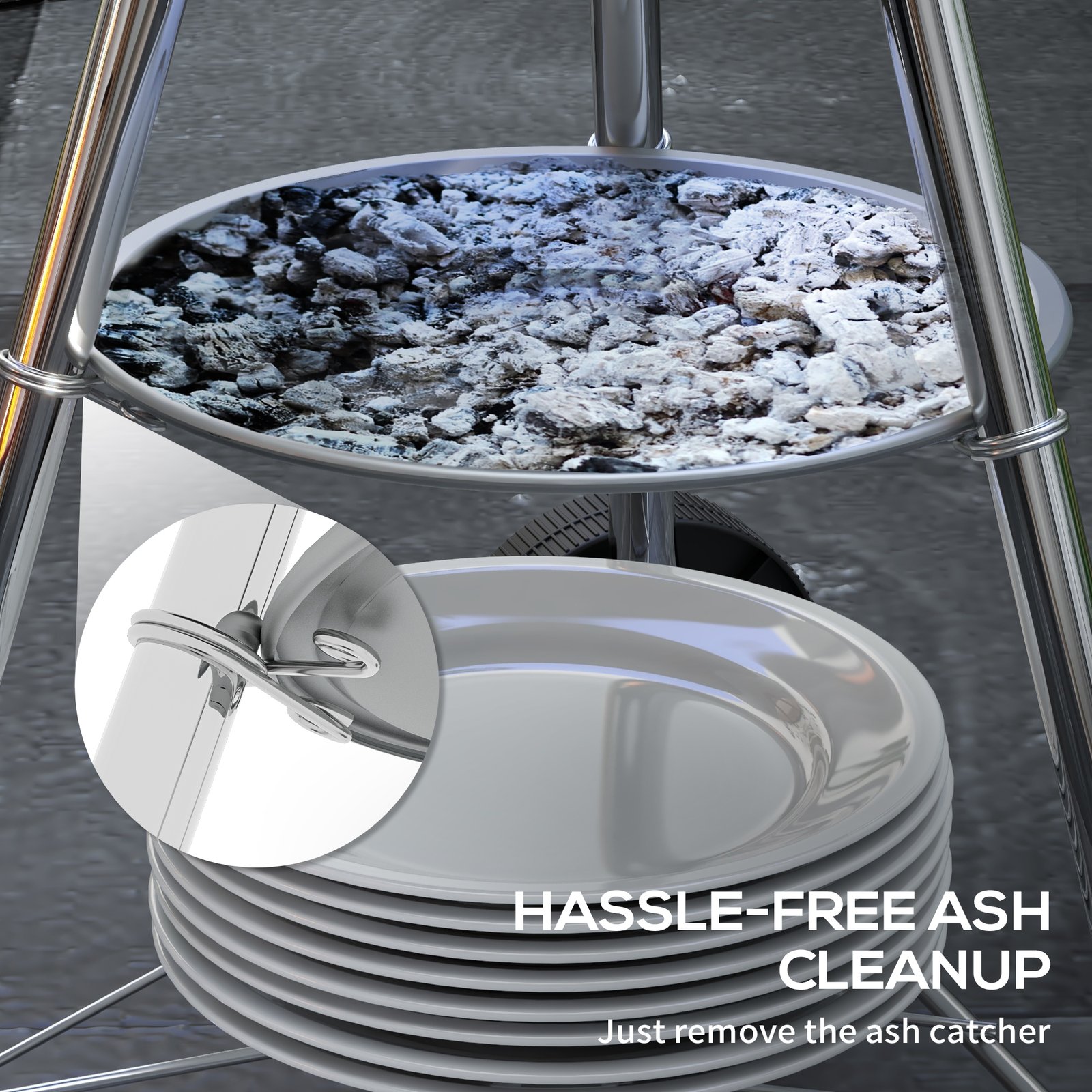 Bring your garden alive in the summer with this portable bbq from Outsunny. Made from steel for durability for years to come, the lid is covered with porcelain enamel to provide even heat resistance up to 500, allowing you to cook food quickly, with air vents for constant heat control without lifting the lid. With a generously sized grill, you are able to cook a whole host of food, and its one-touch cleaning system means you can clean the ash up quickly and easily to save you time and unnecessary effort. Three stainless steel legs provide strength and stability, with two wheels to move the unit around easily if you wish. With a convenient bottom shelf and a wooden handle for safety whilst cooking, this mini grill really has it all.