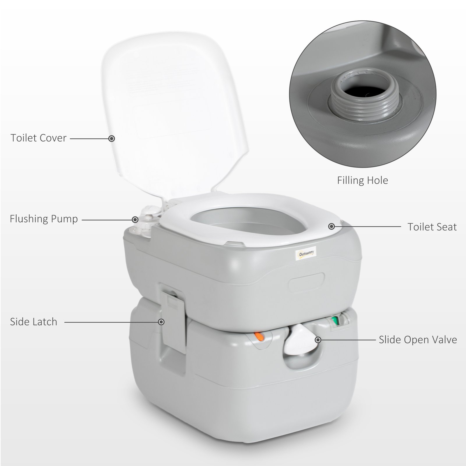 Outsunny Portable Toilet for Adults, 22L Camping Toilet with Seat, Lid and Anti-Leak Handle Pump, Outdoor Travel Toilet with Detachable Tanks for Camping, Boating, Hiking, Travel, RV, Grey