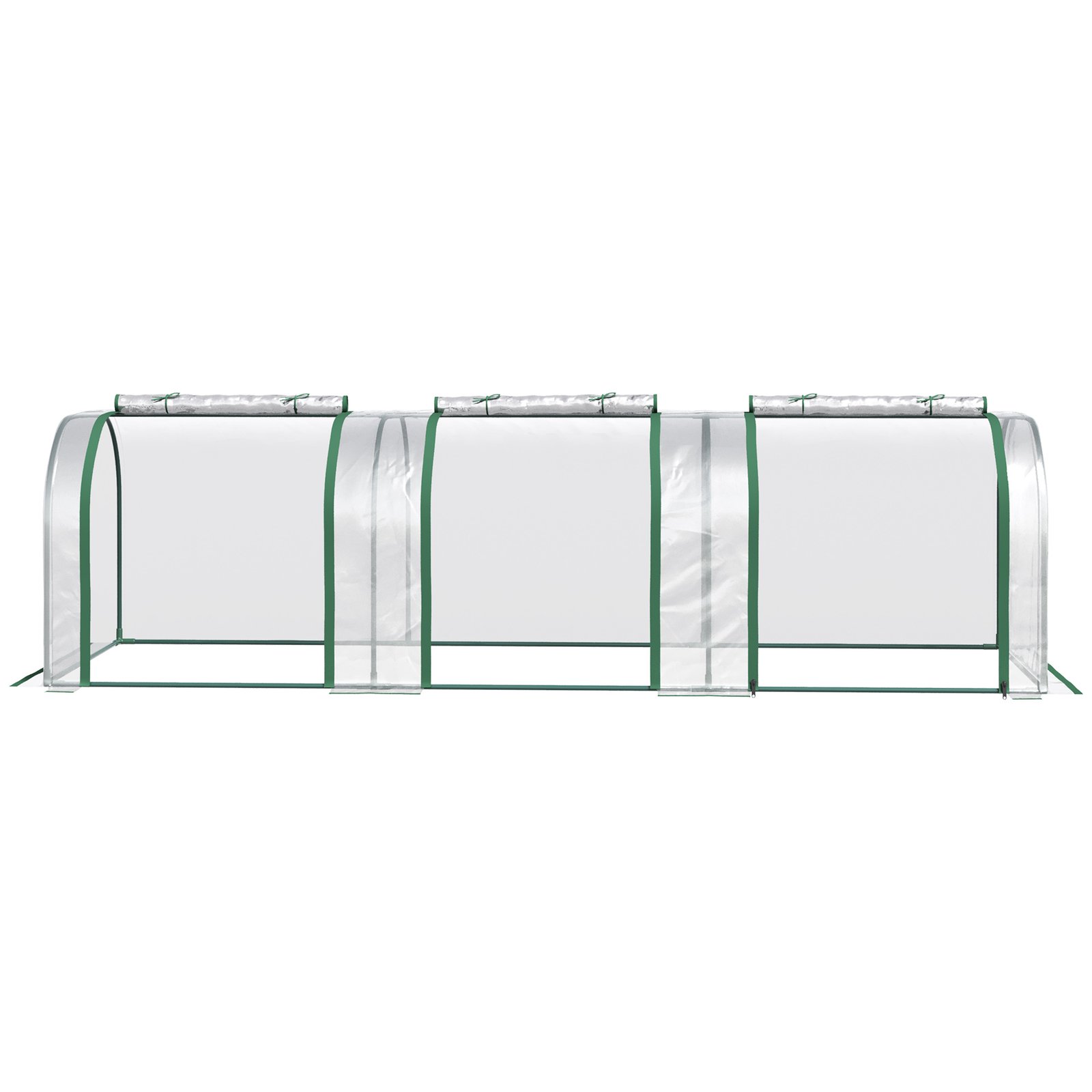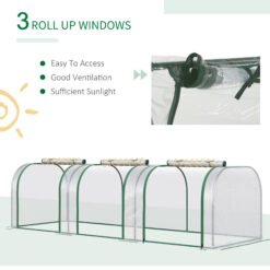 Grow plants, vegetables, fruit and flowers safely all year round with this long tunnel greenhouse from Outsunny. With a powder coated steel frame for strength and durability, it features a durable cover, helping to protect plants from cold, whilst providing plenty of sunlight for them to nourish and grow. The cover also features zipped doors, providing you easy access and ventilation throughout. Lightweight enough to be moved around, this greenhouse is perfect for gardens, patios, balconies and allotments.