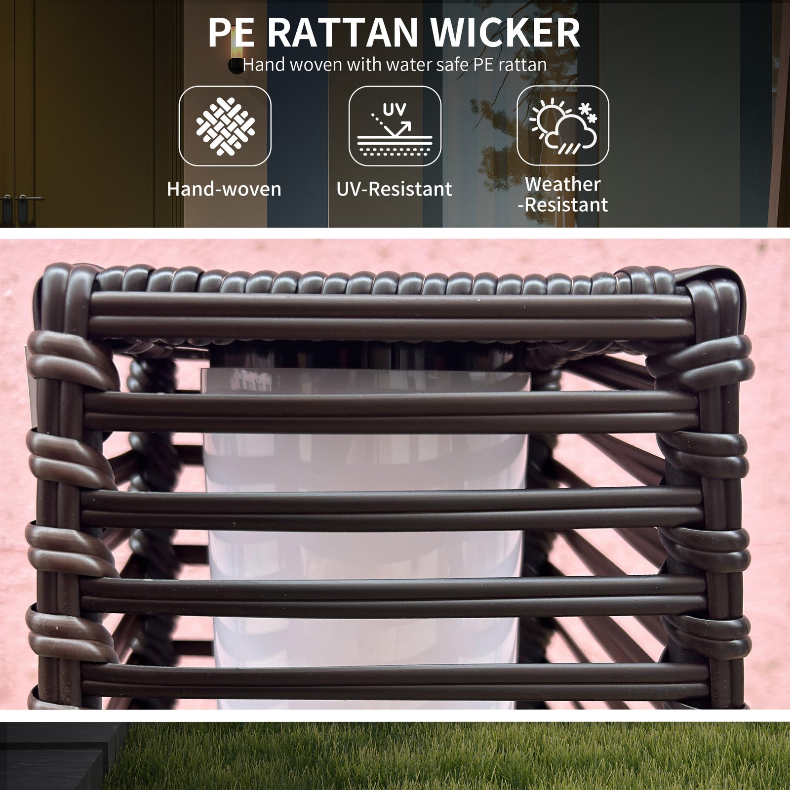 - Materials: Steel, PE Rattan