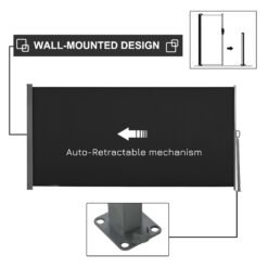 Outsunny Retractable Sun Side Awning Screen Fence Patio Garden Wall Balcony Screening Panel Outdoor Blind Privacy Divider (3×1.6M, Black)