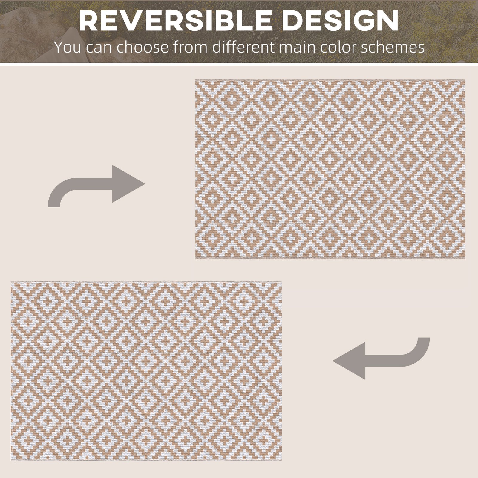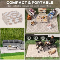 Please set up your camping or outdoor activities base with our waterproof rug. Designed for camping, picnicsand road trips, it’s suitable for camper vans, RVs, beaches, patiosand playrooms. Resistant to water, UVand fading its reversible design allows for a quick style change. Be the envy of your friends!
