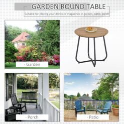 • Round garden table: Stylish outdoor table with lots of space for drinks or magazines, suitable for decorating gardens, patios, or porches. The great addition to any outdoor area.