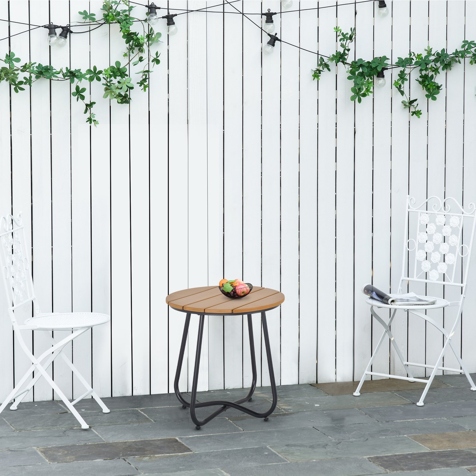 • Slatted design: The garden tabletop features a modern slatted design that adds elegance and blends seamlessly with outdoor decor. It also prevents water buildup during rainy days.