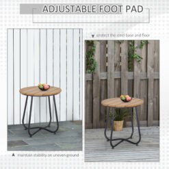 Outsunny Round Outdoor Side Table Adjustable Leg Pads Garden Table 49 x 49 x 48 cm Natural Wood & Black