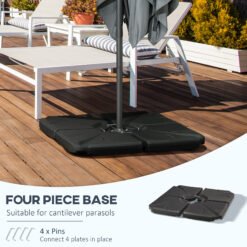 • FOUR-PIECE BASE: Made for cantilever banana parasols, this water filled parasol base keeps your summer garden umbrella upright and in place to provide shade outdoors/in the garden. Cross base not included.