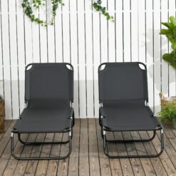 Outsunny Set of Two Metal Frame Folding Sun Loungers – Black
