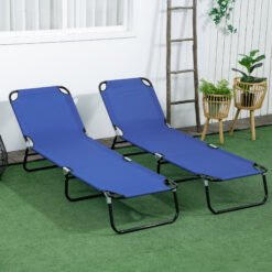 This set of two sun loungers, from Outsunny, means you and a friend can sunbathe outdoors in comfort. Both folding garden sun loungers feature reclining backs – set between the five positions; pick the angle you like most. Powder coated steel frames for a strong and supportive core; the outdoor day bed can be folded to carry and store easily.