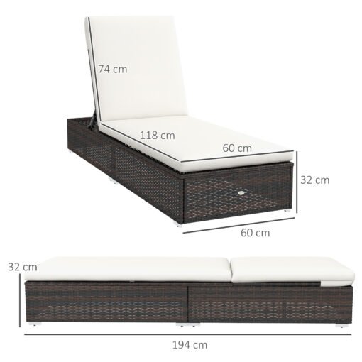This Outsunny rattan sun lounger set is an excellent sunbathing partner, for you and a friend. Each has an aluminium frame for a strong core, wrapped in plastic wicker for a stylish rattan look. The five-position adjustable back allows you to set it to a level that is suitable for you, whilst a longline padded seat provides all the comfort you need. Both garden sun loungers are completed with foot pads to gently protect the floor.