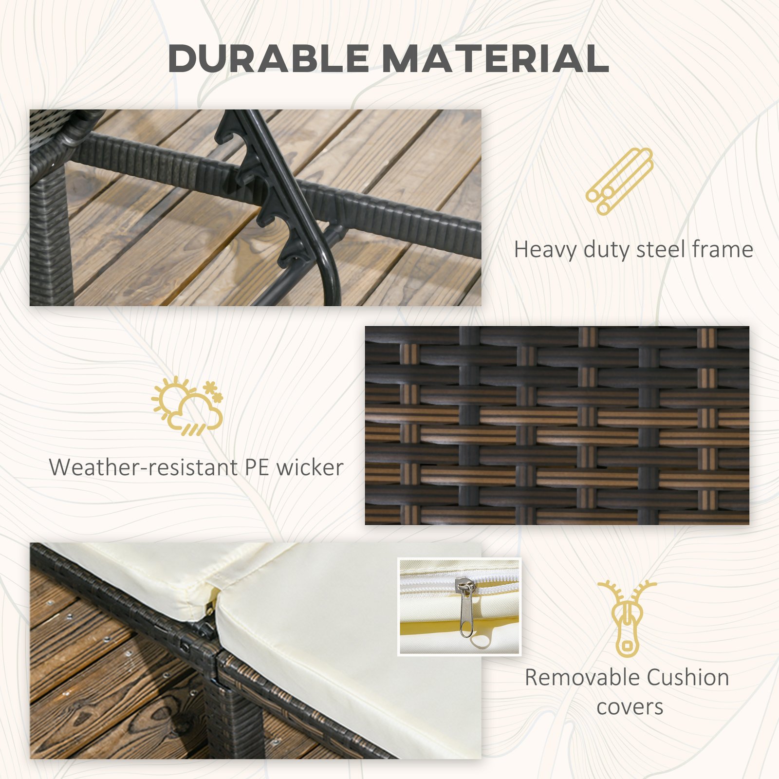 Outsunny Set of Two Reclining Rattan Sun Loungers, with Cushions - Brown/Cream