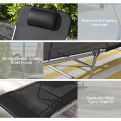 Outsunny Set of Two Steel Frame Sun Loungers, with Reclining Backs – Black