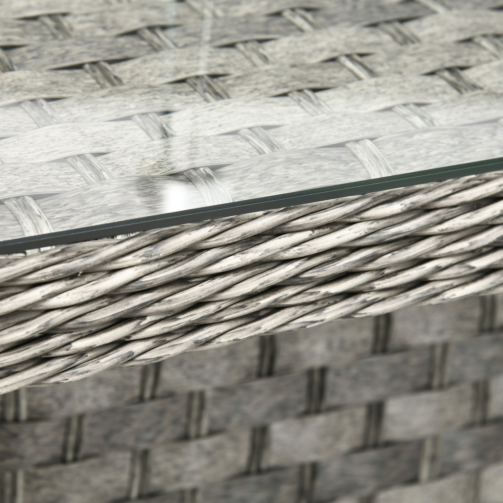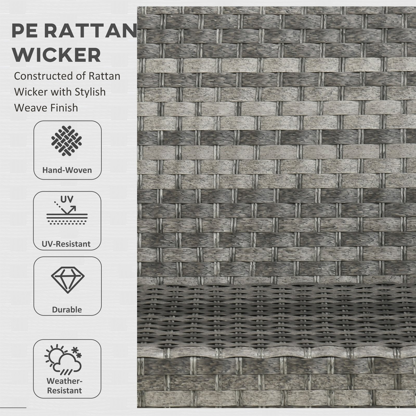 Relaxing evening times need never be cold again – do it in one with this Outsunny rattan set, with fire pit table. The two corner loveseats, standard loveseat, three footstools and matching fire pit table mean there’s room for your favourites to gather round, with the table giving you somewhere to eat and drink from. In the middle of the table, there’s a fire pit: provides up to 50,000 BTU power – plenty of heat for the colder climes. There’s a wind guard for the fire, so you can keep peace of mind, at all times.