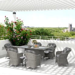 Outsunny Seven-Piece Rattan Dining Set – Light Grey