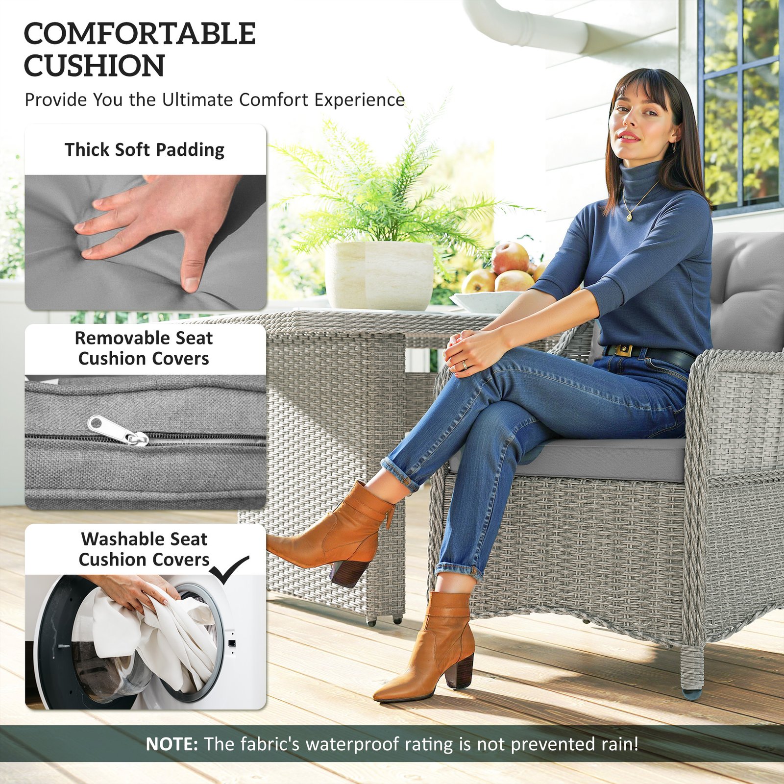 - 230 gsm Olefin fabric resists UV, fading and wear for long-lasting outdoor use
