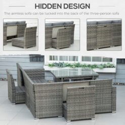 Outsunny Seven-Piece Rattan Garden Sofa Set, with Expanding Table – Grey