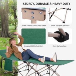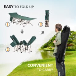 Outsunny Single Person Camping Bed Folding Cot Outdoor Patio Portable Military Sleeping Bed Travel Guest Leisure Fishing with Side Pocket and Carry Bag – Green