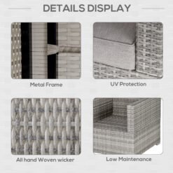 Outsunny Single Seater Rattan Chair Sofa with Padded Cushions, All-Weather PE Wicker Weave Garden Armchair with Armrests, Grey