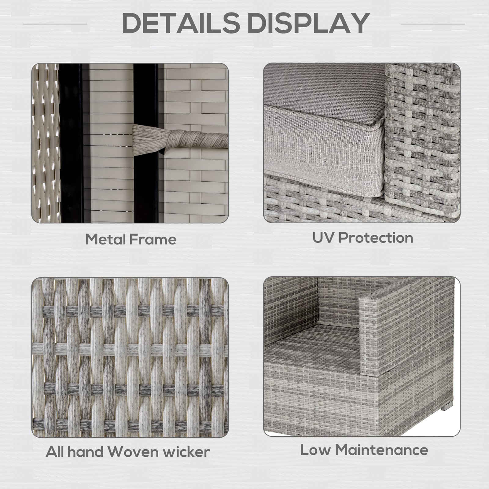 • Metal wrapped in rattan: The comfy garden chair made of steel frame with powder-coated process to ensures a strong and stable base, with PE wicker wrapped around for protection against mild weathering and fading.