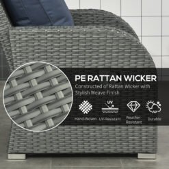 Outsunny six-piece outdoor wicker dining set is designed for the garden enthusiast. Crafted with a robust powder-coated steel frame and elegantly wrapped in weather-resistant plastic wicker, this set promises durability and style. Imagine a serene afternoon where you recline in the adjustable armchairs, enveloped in plush cushions, as your garden transforms into a haven of comfort. It can be effortlessly rearranged to accommodate gatherings.