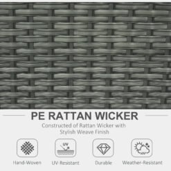 • Durable and Stylish: Crafted with a powder-coated steel frame and wrapped in UV and water-resistant rattan, this set combines strength with a chic aesthetic for long-lasting luxury.