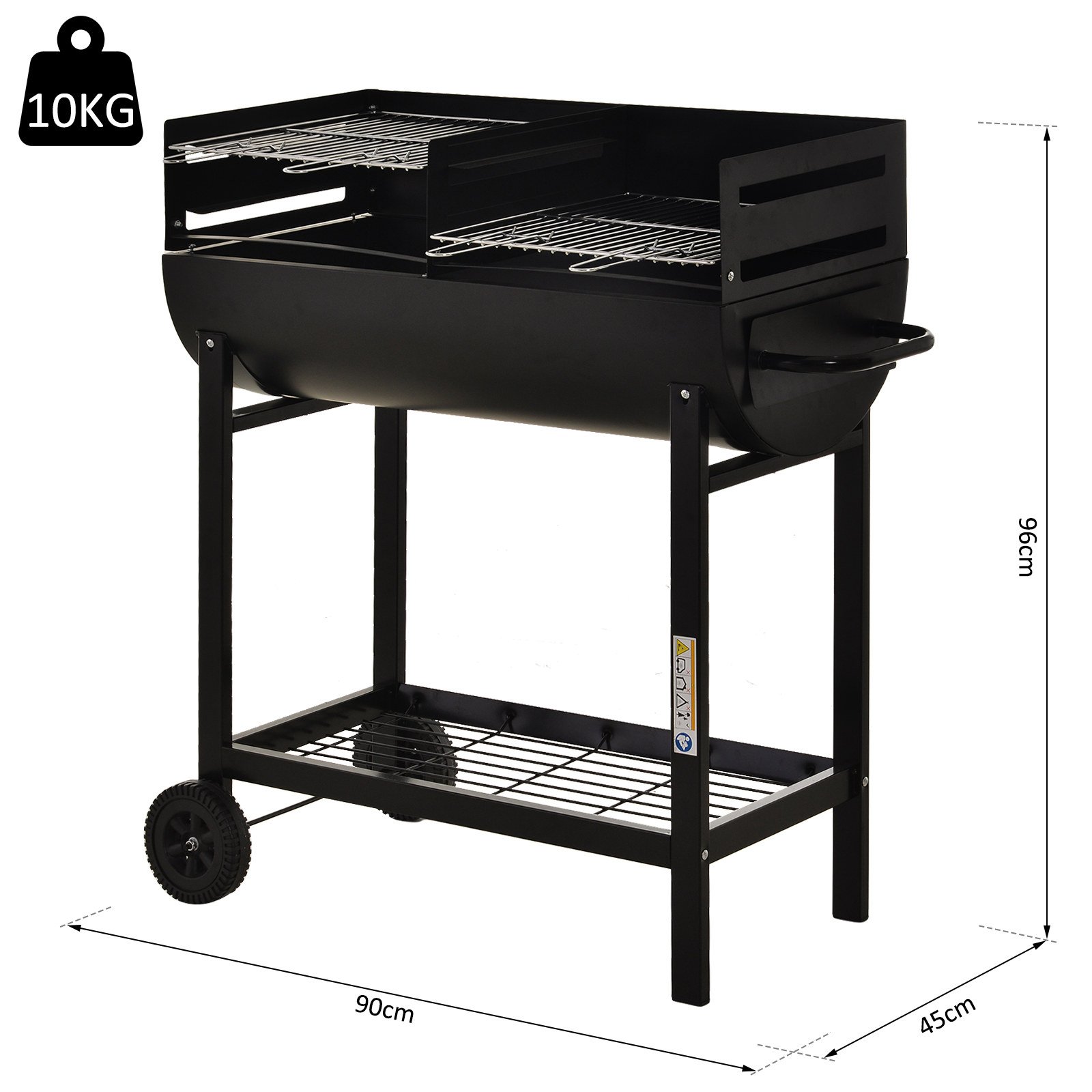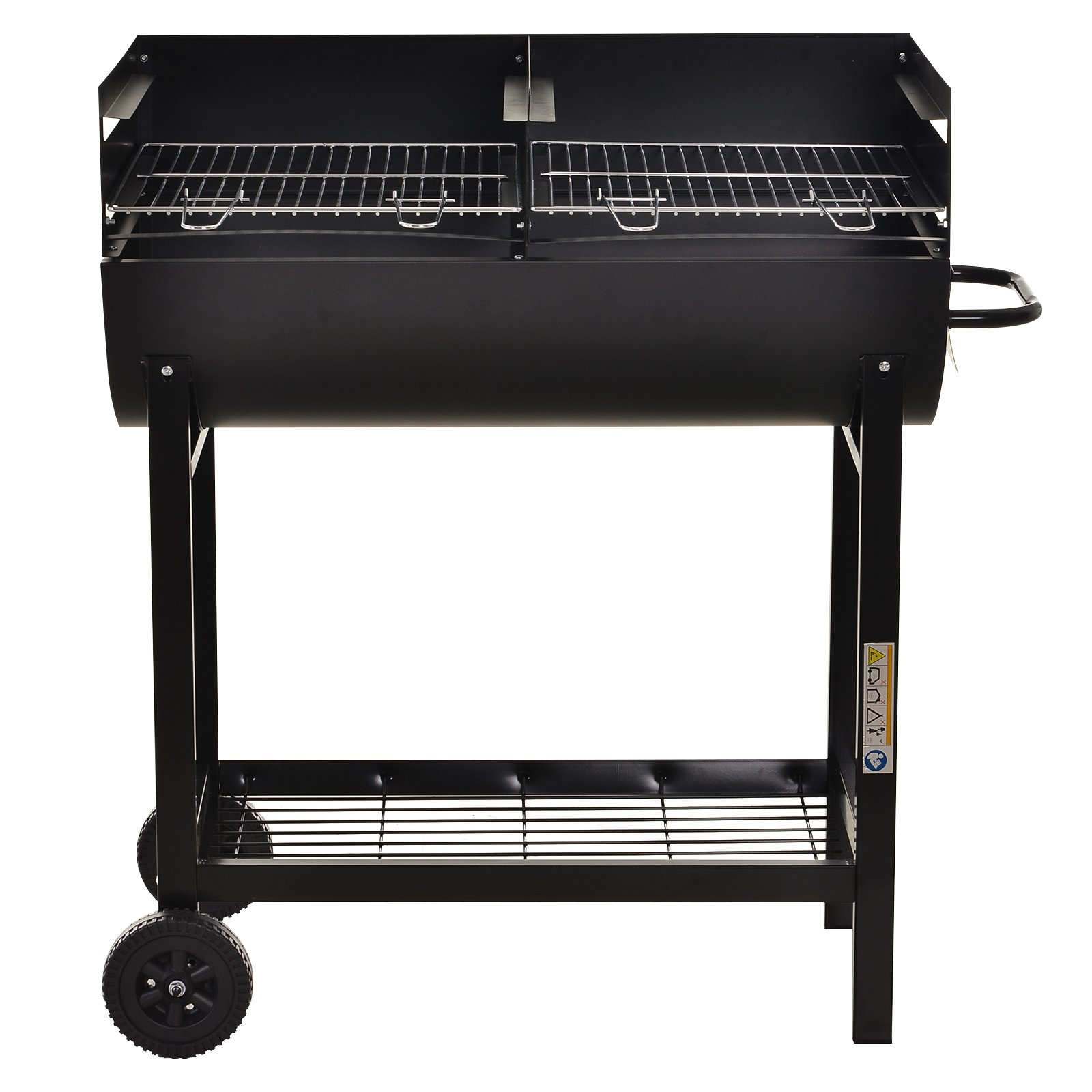 Take your outdoor parties and BBQs to another level with this charcoal smoking grill from Outsunny. Portable in design with two wheels for you to move around easily, it is made with two separate grilling areas, allowing you to cook more and halve your cooking time, with its 300 heat-resistant steel body allowing you to cook food to a high temperature and achieve a delicious smoked effect all your guests will enjoy. Adjustable to three different heights to set to a safe level whilst in use, this piece is finished with a bottom mesh shelf for convenient storage. An all-rounder which will deliver every time.