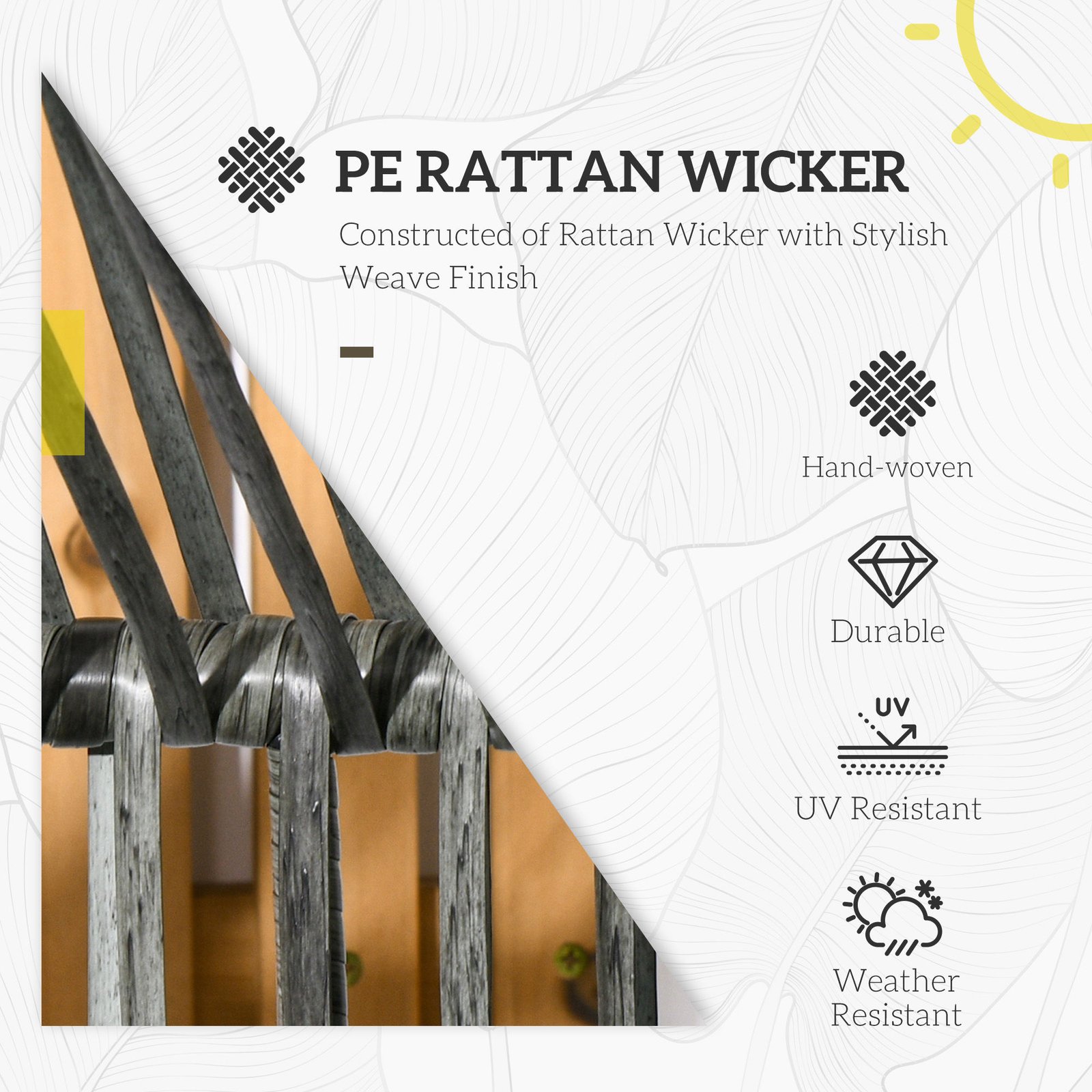 - Strong steel frame, wrapped in protective and stylish plastic wicker