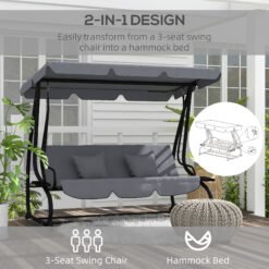 • 2-in-1 design: This three-seater garden swing transforms from a seat to a bed, offering dual functionality in a single, versatile piece.