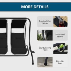 Double the outdoor fun with this two-seat garden swing with canopy from Outsunny. Both swing seats for adults seats come with a cup holder so you can enjoy your favourite drinking whilst soaking up the sun. The curved steel frame is built to last and rock-solid, with a large base so it keeps balanced. You’ll cherish your summer days even more now with this garden swings for adults.