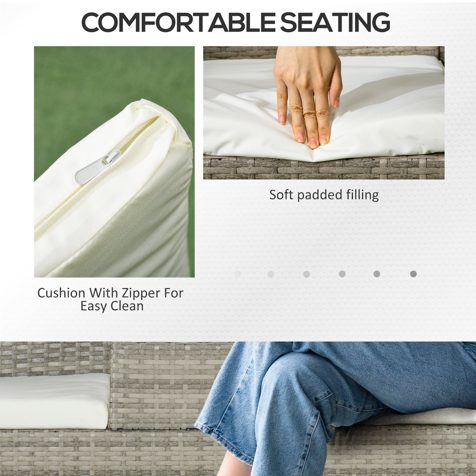 - Cushions for comfort, with removable and washable covers