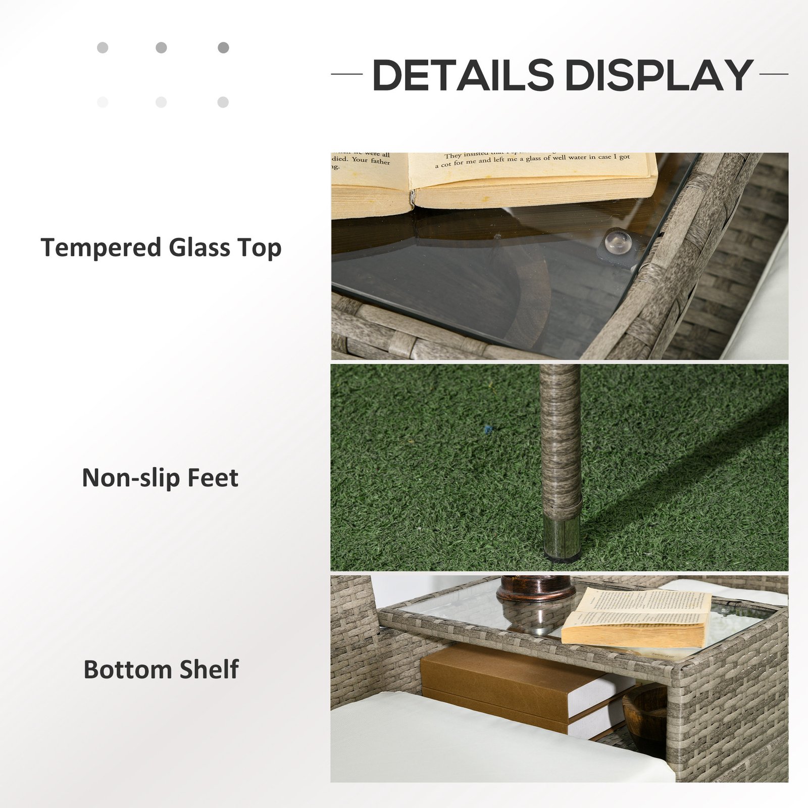 - Material: PE Rattan, Steel, Glass, Polyester
