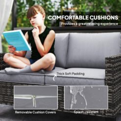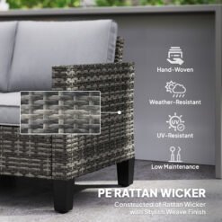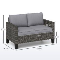 Outdoors times with company, made comfortable with this Outsunny outdoor loveseat. A galvanised steel frame with powder coating means a strong core, wrapped in tough plastic wicker for a protective outer. Thick cushions ensure comfort; patio sofa is complete with adjustable feet so it stands steady and balanced.