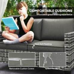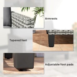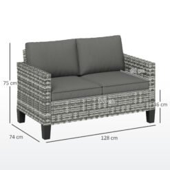 Outdoors times with company, made comfortable with this Outsunny outdoor loveseat. A galvanised steel frame with powder coating means a strong core, wrapped in tough plastic wicker for a protective outer. Thick cushions ensure comfort; patio sofa is complete with adjustable feet so it stands steady and balanced.