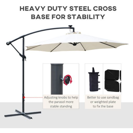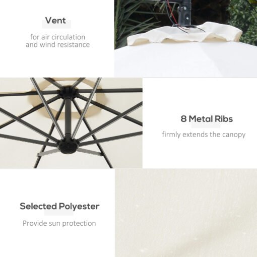 Make the summer evenings last longer with this garden parasol with base included from Outsunny. It is equipped with eight solar powered LED strips under the canopy, providing soft light when the sun goes down, without requiring a battery. The steel frame is strong so it stands steady; eight ribs attached to the canopy offer plenty of support. The garden umbrella parasol is finished with a crank handle to open and close the canopy quickly – perfect for when you need shade instantly.