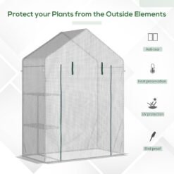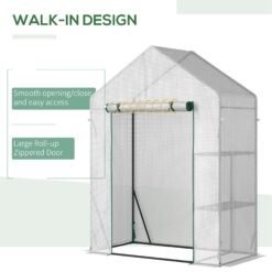 Get this portable greenhouse from Outsunny to extend your growing season by protecting plants from cold and birds. It comes with a steel frame for a steady core. The PE cover creates a protective shell, holding in the heat and shielding from wind and rain. The roll-up door, with zip fastening, allows you to enter and leave to access your plants at any time. Simply put up, go and grow. Do not leave standing in heavy weather conditions.