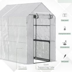 Looking for a way to grow crops all year round? Do it with this Outsunny walk-in greenhouse. Steel frame for a tough core, it’s fitted with a PE plastic cover for shelter against the elements. The roll-up door ensures easy access. Inside, there are four wired panel for easy storage and organisation. Update your garden, grow plants and fall in love with your garden all over again.
