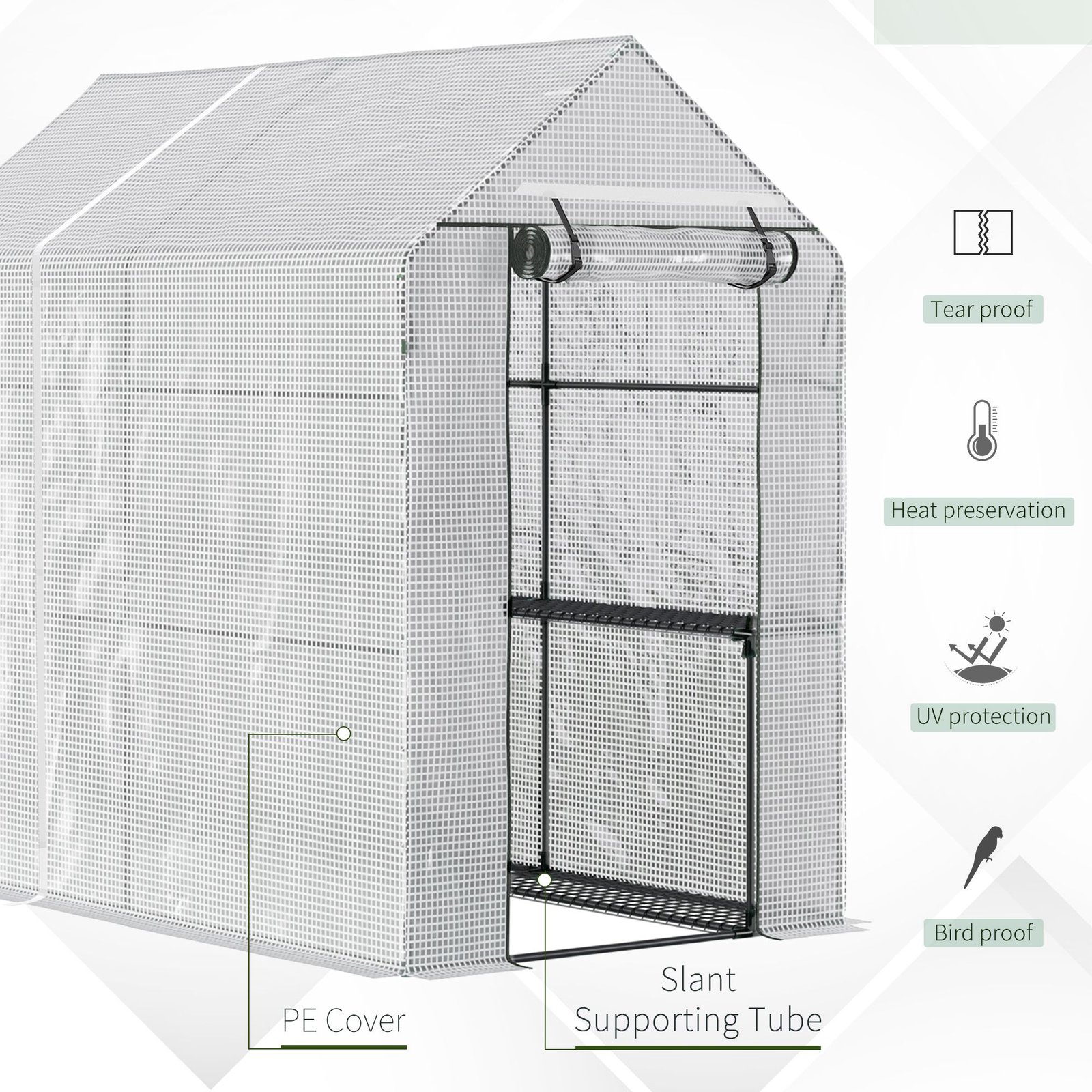 - UV and weather-resistant PE plastic cover allows sunlight to pass through, keeps plants and crops protected. Overlong bottom to dig into the soil