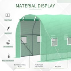 An ideal solution from Outsunny for gardening hobbyists, those looking to grow plants, vegetables and more without having a permanent grow house. Thick PE plastic cover creates a safe shelter, maintaining temperature inside for healthy growth. Roll up windows allow air inside when needed. The galvanised steel frame forms a strong core structure, with four guy ropes and ground stakes included.