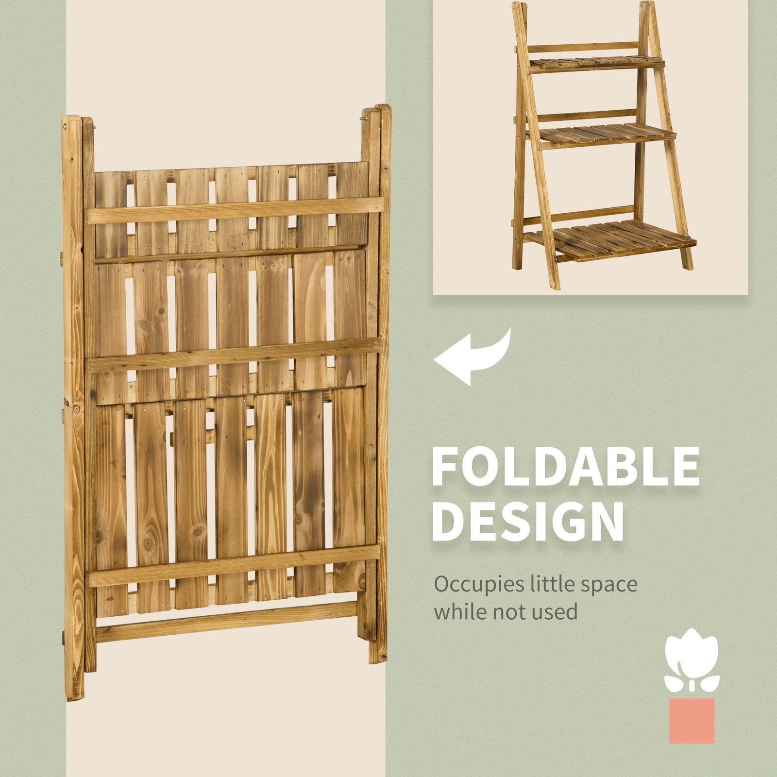 This Outsunny 3 tier pots stand is a great place for you to organize your pots and plants. Made from fir wood in a ladder design is great for small spaces. Ideal for patios, decks, balconies and small green houses. The structure creates a welcoming point in your back garden. This simplistic design can be put up in minutes.