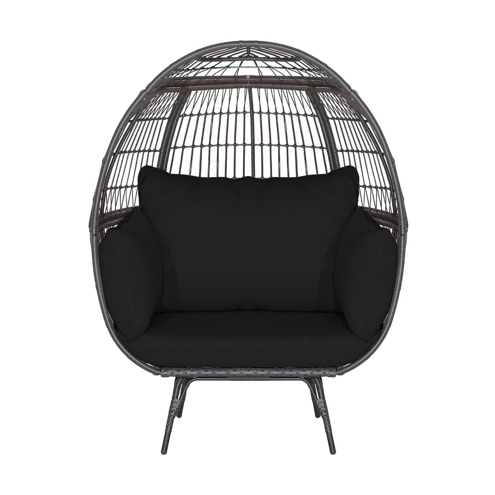 Oversized Patio Wicker Egg Lounge Chair with 4 Soft Cushions-Black
