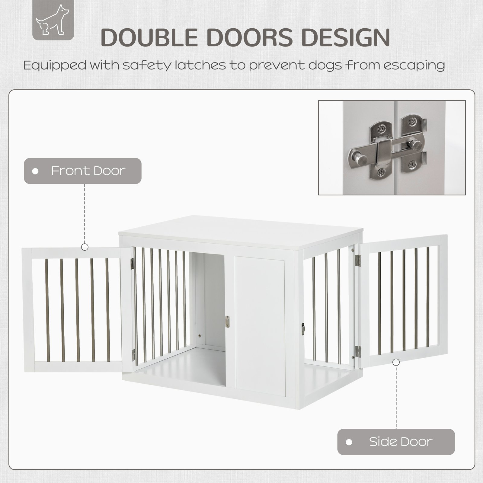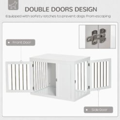 With this PawHut dog cage, pets will be comfortable and protected. Made from sturdy MDF, it’s easy to clean and strong enough to hold medium dogs. Two doors for easy access so that pets can pass through make it much simpler to clean and maintain. Not just a dog crate, but a side table too – use the wide top to display your favourite pieces, making your home more aesthetically pleasing. A fantastic way to keep pets in a place, while giving your room a decorative look.