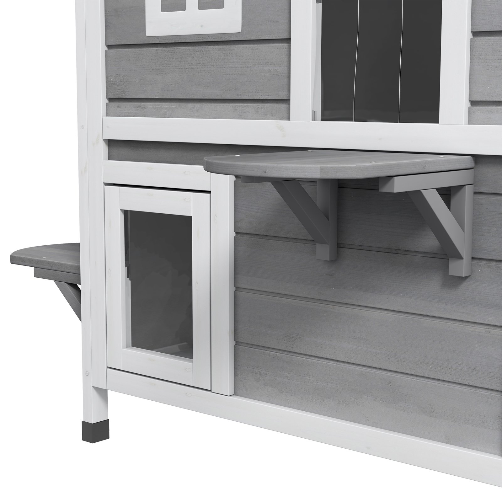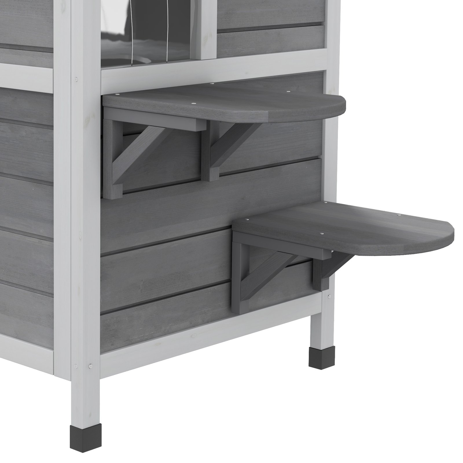 All cats are sure to enjoy this PawHut outdoor cat house. Its asphalt roof and wooden structure is water-resistant – suitable for outdoors. There are two levels, providing enough room for two cats to relax comfortably. With three jumping steps, two doors, a floor hole and an escape door, there are plenty of fun ways to get in and out. Finished with an openable roof, making it easy to get in and clean this cat house – it also keeps their area ventilated, preventing unpleasant odours from forming.