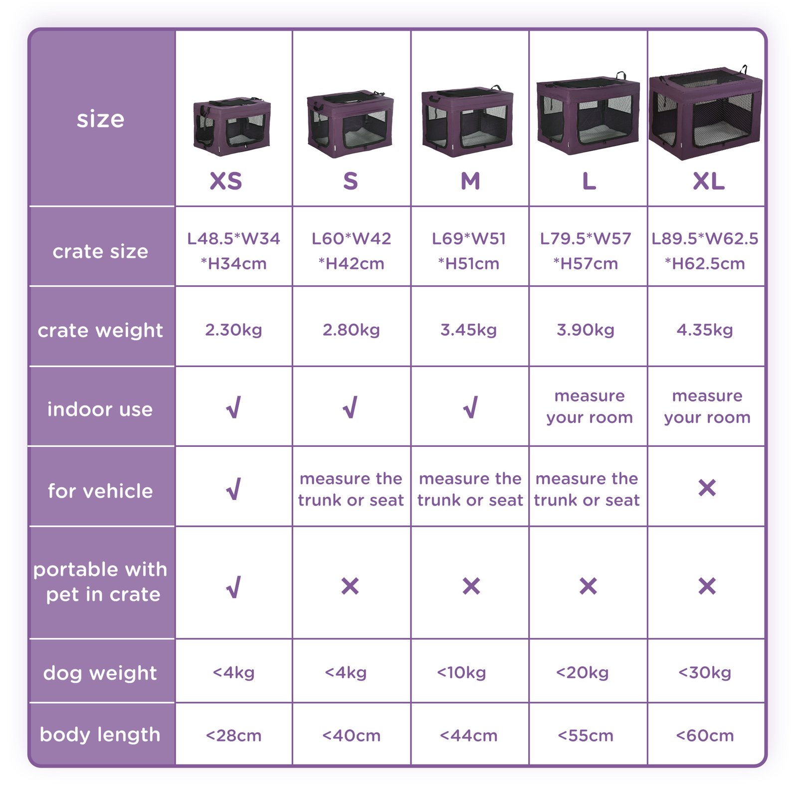 • Dimensions: 42H x 60L x 42Wcm. Suitable for cats and miniature dogs less than 4kg and 40cm in length.