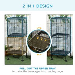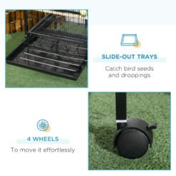 PawHut Bird Cage Budgie Cage 2 In 1 Large Aviary with Wheels Removable Trays for Finch Canaries Cockatiels Black