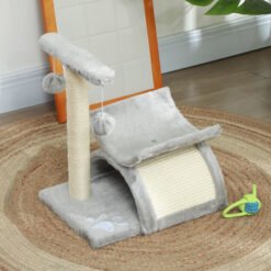 PawHut Cat Tree, Cat Tower for Kittens with Rotatable Top Bar, Sisal Scratching Post, Tunnel, Dangling Balls – Grey