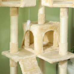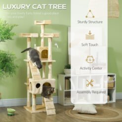 Indulge your beloved felines with the PawHut cat tree. Designed for the cat owner, this multi-level sanctuary offers a perfect blend of play and relaxation, ensuring your precious furniture remains unscathed. Watch as your cats joyfully leap between levels, captivated by hanging toys, and find solace on plush-covered perches and cozy cat houses. Built to withstand frequent use, this durable structure enhances your pets’ lives while seamlessly complementing your elegant home decor.
