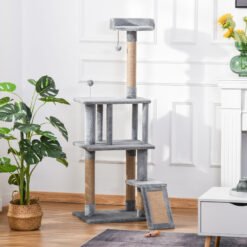 PawHut Cat Tree Tower 142cm Climbing Kitten Activity Center with Jute Scratching Post Board, Removable Felt Hanging Toy, Grey
